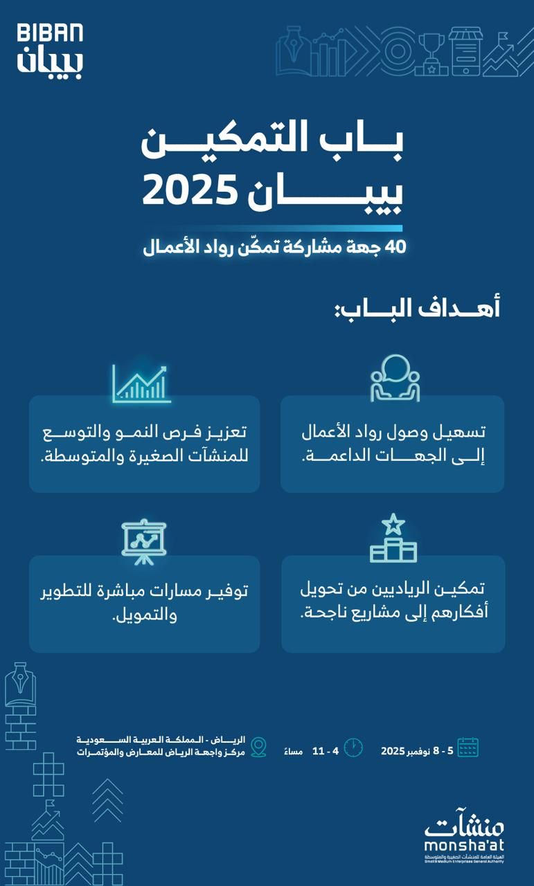 40 جهة حكومية وممكنة تقدم خدماتها لرواد الأعمال في "بيبان 2025"