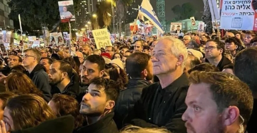 غانتس يشارك في مظاهرة لأهالي الأسرى ضد نتنياهو