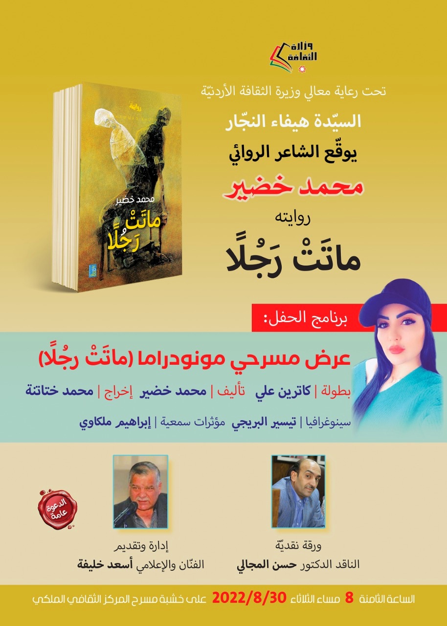 "الشاعر الروائي محمد خضير يطلق روايته ماتت رجلا الثلاثاء القادم "