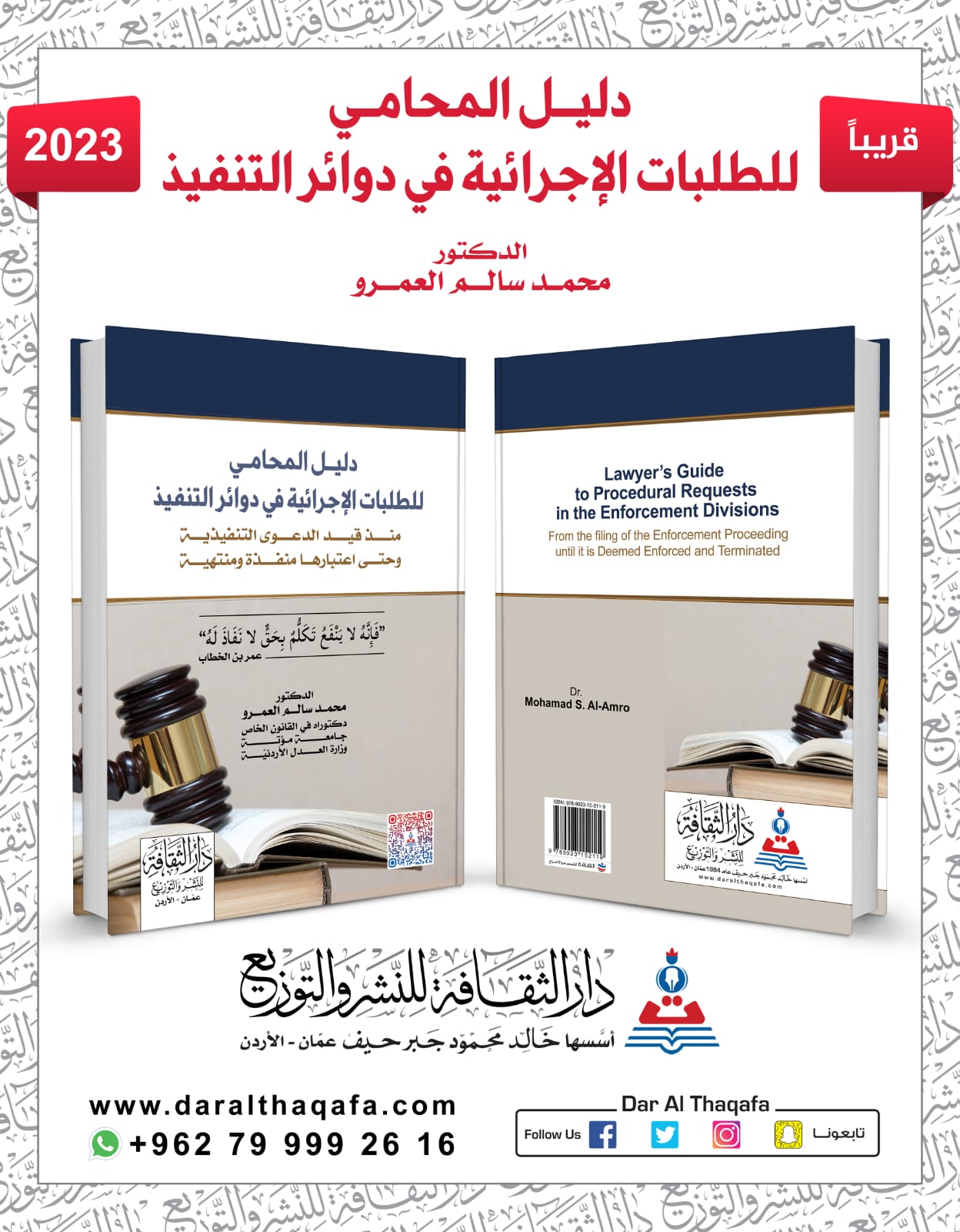 المحامي عمر الطراونة يهنئ زميله دكتور القانون محمد سالم العمرو إصدار كتابه القانوني دليل المحامي للطلبات الاجرائية في دوائر التنفيذ