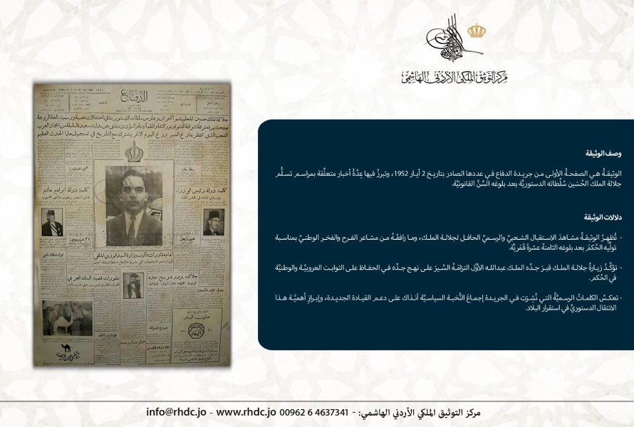 وثيقة بمناسبة الذكرى 73 لتولي جلالة المغفور له الملك الحسين سلطاته الدستورية