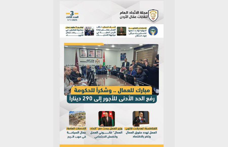 صدور العدد الثالث من مجلة الاتحاد العام لنقابات عمال الأردن