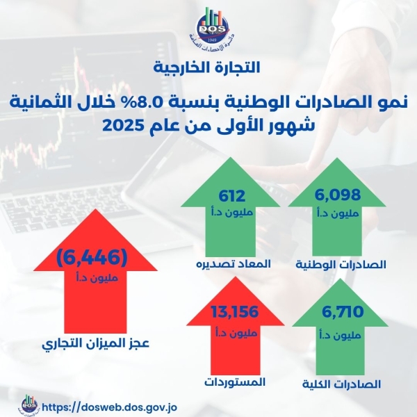 نمو الصادرات الوطنية بنسبة 8.0% خلال 8 أشهر