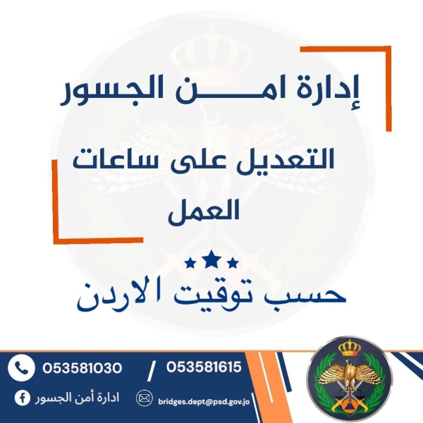 تعديل ساعات العمل الرسمي لجسر الملك حسين اعتبارا من يوم الأحد المقبل