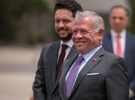 الملك يرافقه الامير الحسين في مجمع الملك الحسين للأعمال