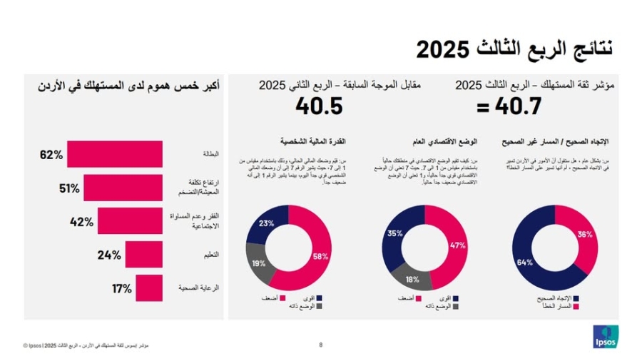تقرير «إبسوس»: البطالة تتصدر هموم الأردنيين تليها تكاليف المعيشة والفقر
