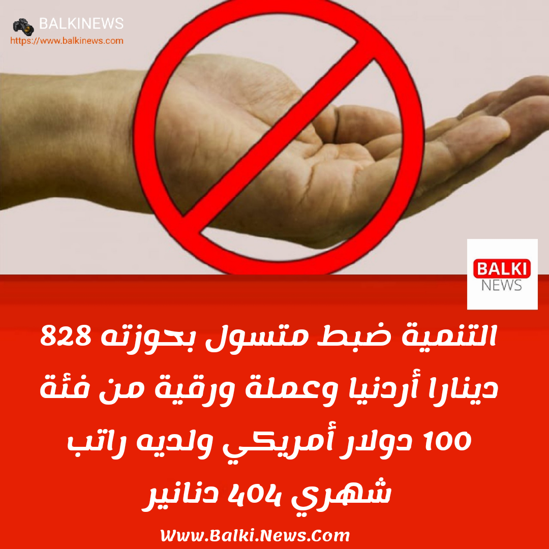 ضبط متسولا بحوزته 828 دينار أردنيا وعملة ورقية من فئة 100 دولار أمريكي ولديه راتب شهري 404 دنانير
