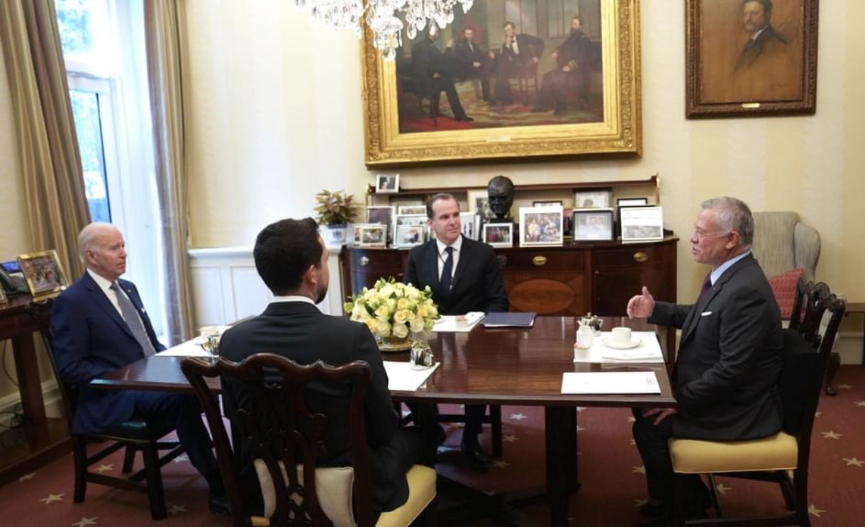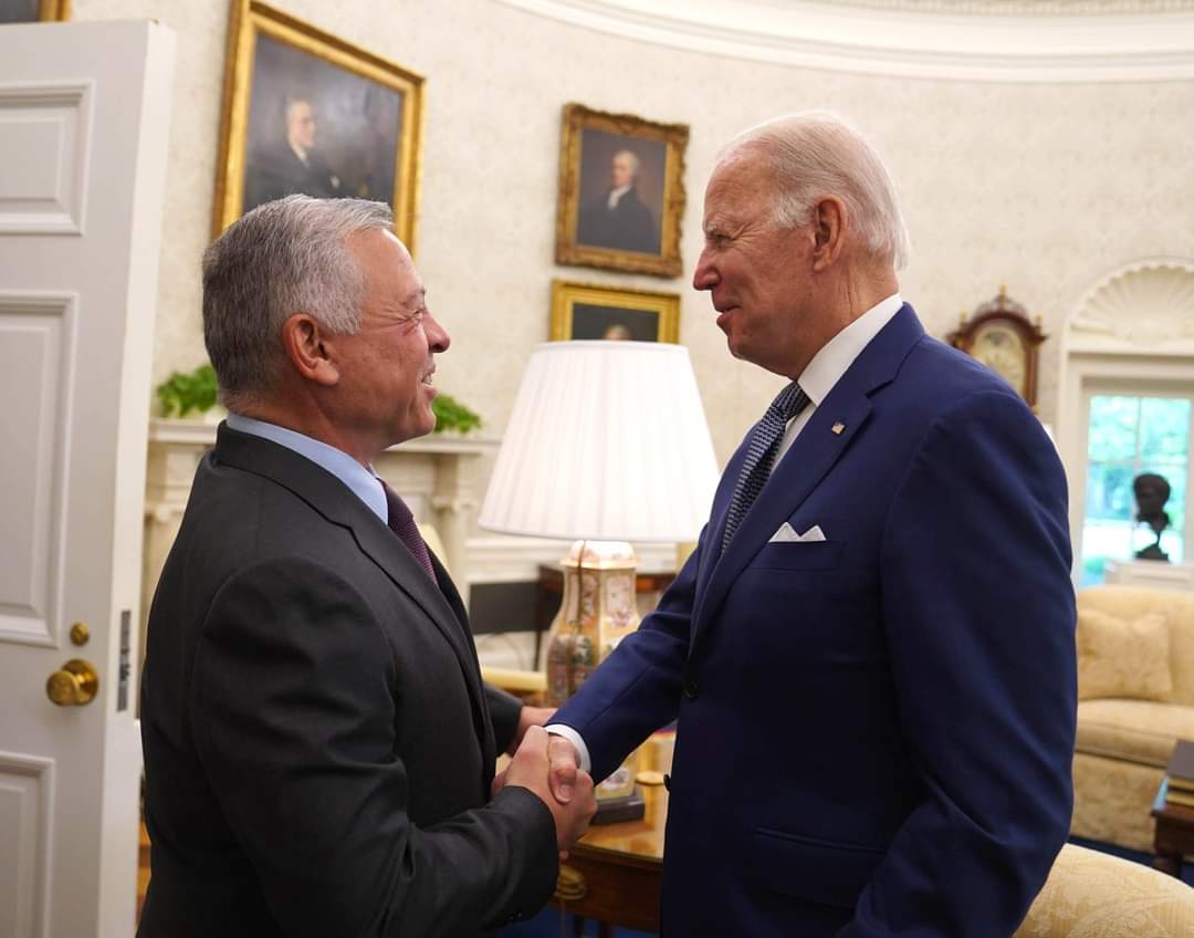 بايدن يؤكد دعمه الكامل للأردن، بقيادة جلالة الملك، مشيدا بالمملكة كشريك محوري للولايات المتحدة في الشرق الأوسط، وعنصر أساسي لتعزيز الاستقرار في المنطقة.