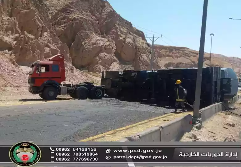 انقلاب صهريج مواد نفطية على طريق العقبة
