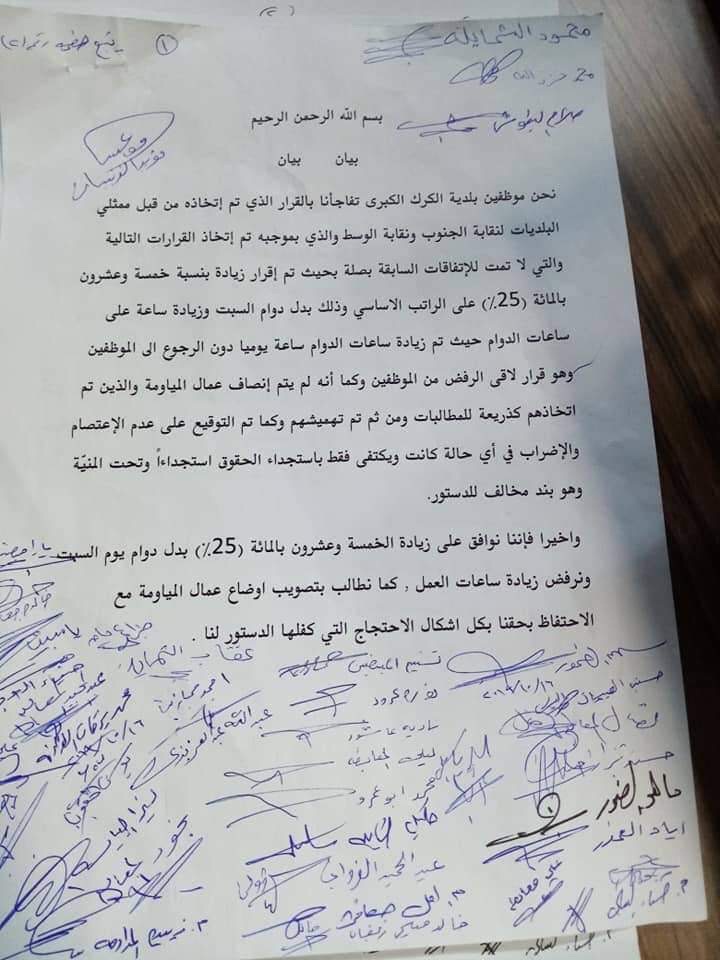 بيان من موظفي بلدية الكرك