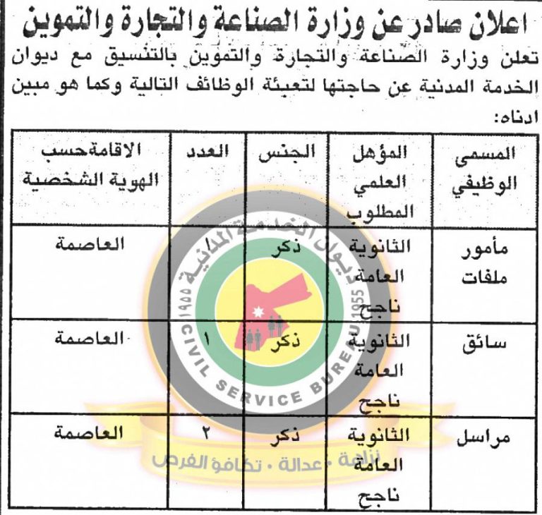 وظائف شاغرة بوزارة الصناعة والتجارة