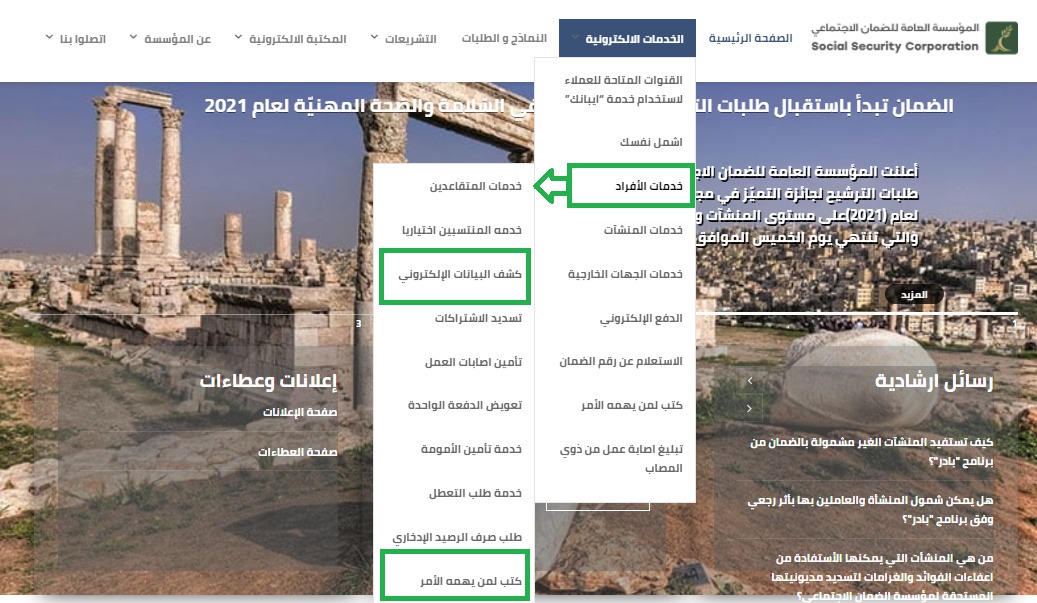 الضمان: تسهيل إجراءات الحصول على "كتاب لمن يهمه الأمر" وكشف الاشتراكات التفصيلي للأفراد إلكترونياً