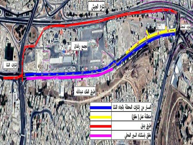 الاشغال تعلن عن تحويلات مرورية على طريق الملك عبدالله الاول