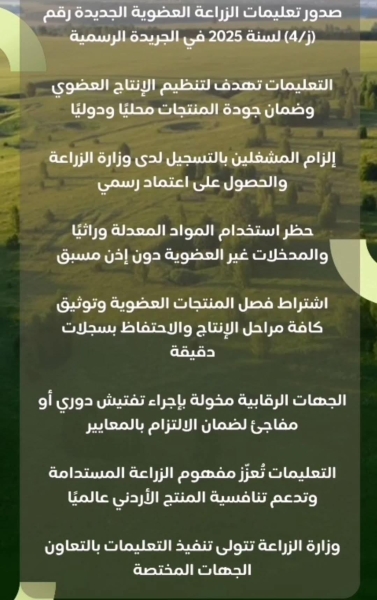 الحنيفات: تعديل تعليمات الزراعة العضوية خطوة استراتيجية للتنظيم وتعزيز تنافسيته