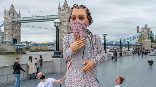 شاهد:الطفلة العملاقة "أمل" تطوف أوروبا للتعريف بمآسي اللاجئين السوريين