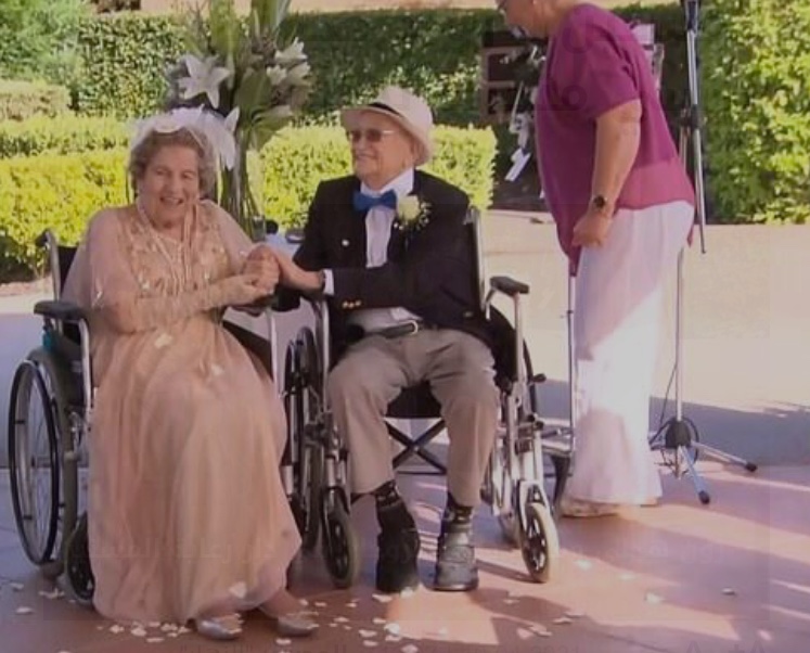 وقعا بالحب في دار رعاية المسنين… زواج عجوزين على كرسي متحرك بحضور أبنائهما