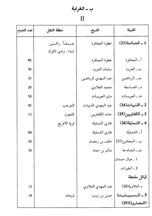 قسمة أهالي الكرك باقية حتى اليوم، ويحضر إلى جانب الشراقا والغرابا ستة اقسام اخرى من عشائر الكرك هي العمرو وبنو حميدة وبنو عطية والبرارشة والمشالخة، ومع أن الشراقا والغرابا حضروا في التقسيمات السياسية والتمثيل الشعبي منذ نهاية القرن التاسع عشر إلا أن بقاء الحلفين على ما كانا عليه تضائل مع مرور الزمن، وهو اليوم يكاد يقل بالظهور، لكل منهما كحلف مستقل في الحضور والتمثيل، نتيجة عوامل عديدة، لكن المهم ان المستشرقين درسوهم جيدا وعلى رأسهم المستشرق الألماني ماكس اوبنهايم صاحب موسوعة البدو وكذلك عند البريطاني بيتر جوبسر في كتابه السياسة والتغيير. وتالياً ما ورد في موسوعة البدو لأوبنهايم بالجزء الثاني: