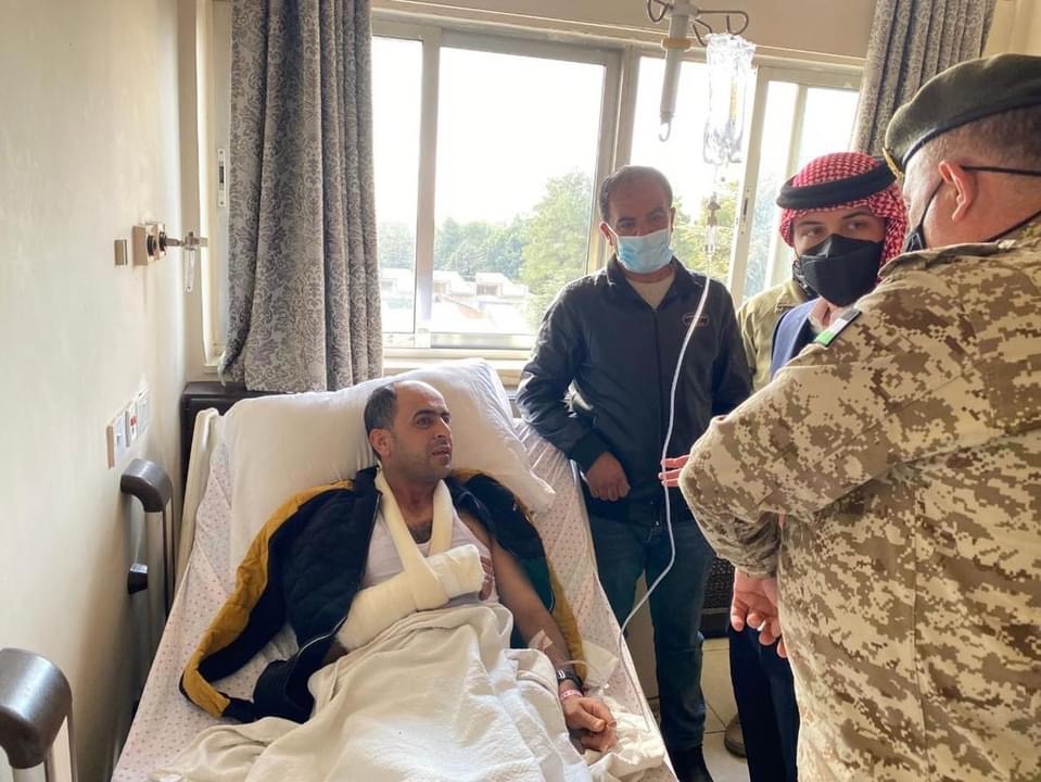 كما عاد سموه ثلاثة أفراد من القوات المسلحة الأردنية – الجيش العربي، الذين يرقدون على سرير الشفاء في مدينة الحسين الطبية بعد إصابتهم خلال تأديتهم الواجب، إذ اطمأن على صحتهم، داعياً الله أن يمنّ عليهم بالشفاء العاجل.