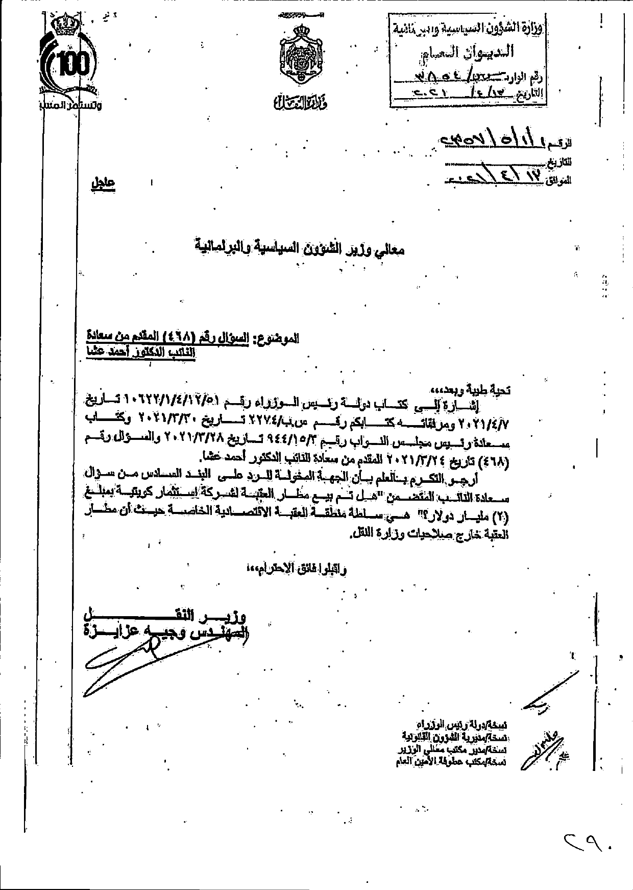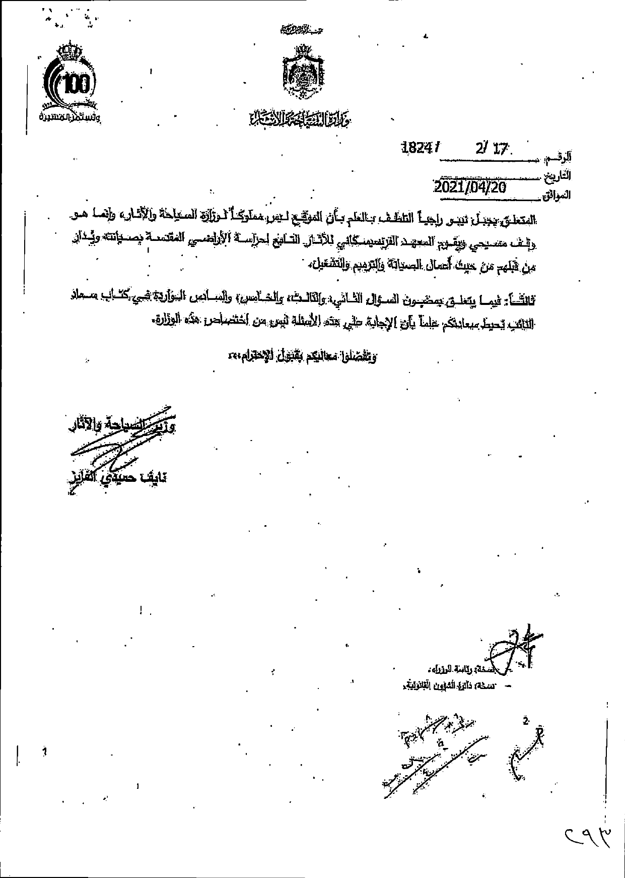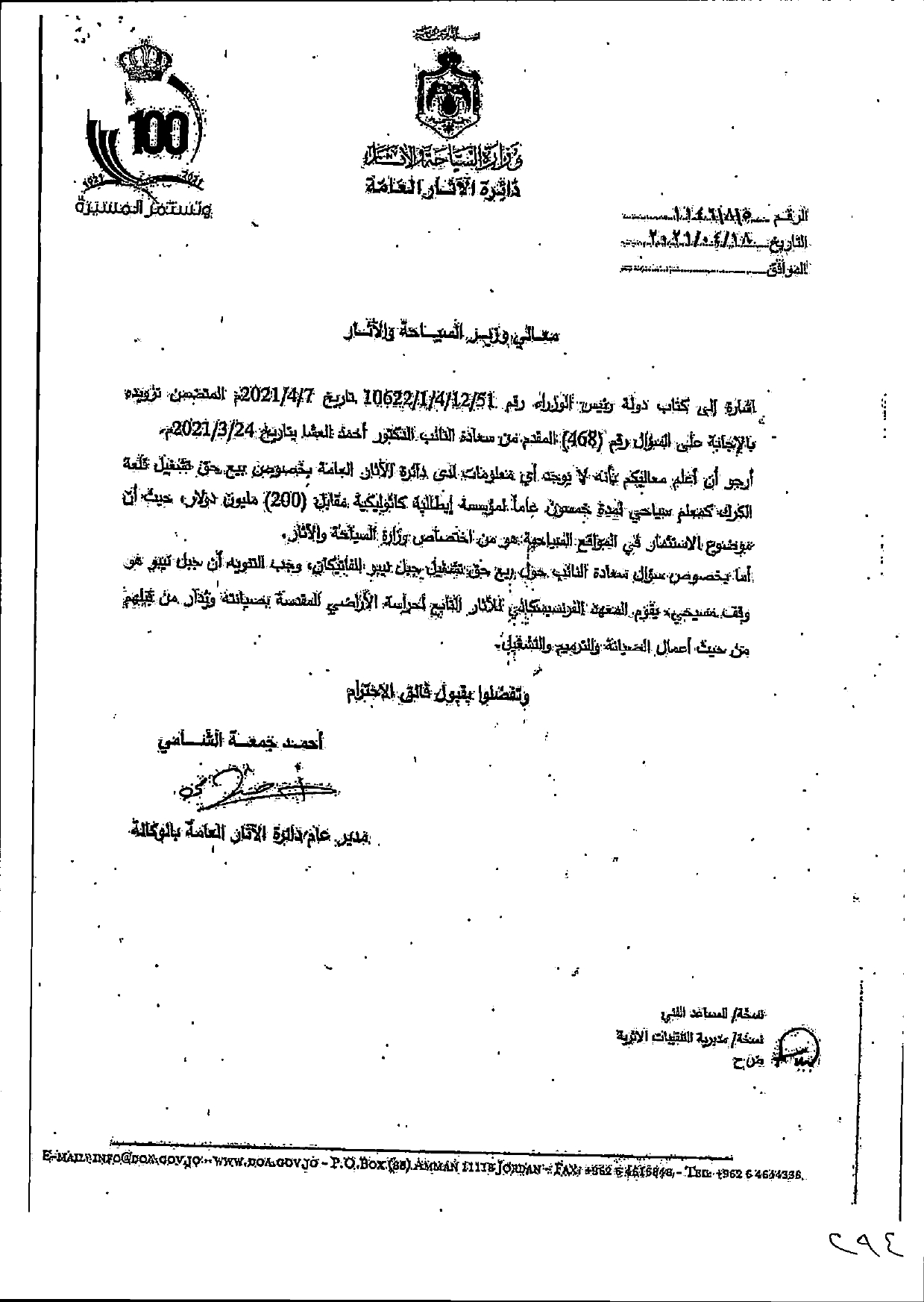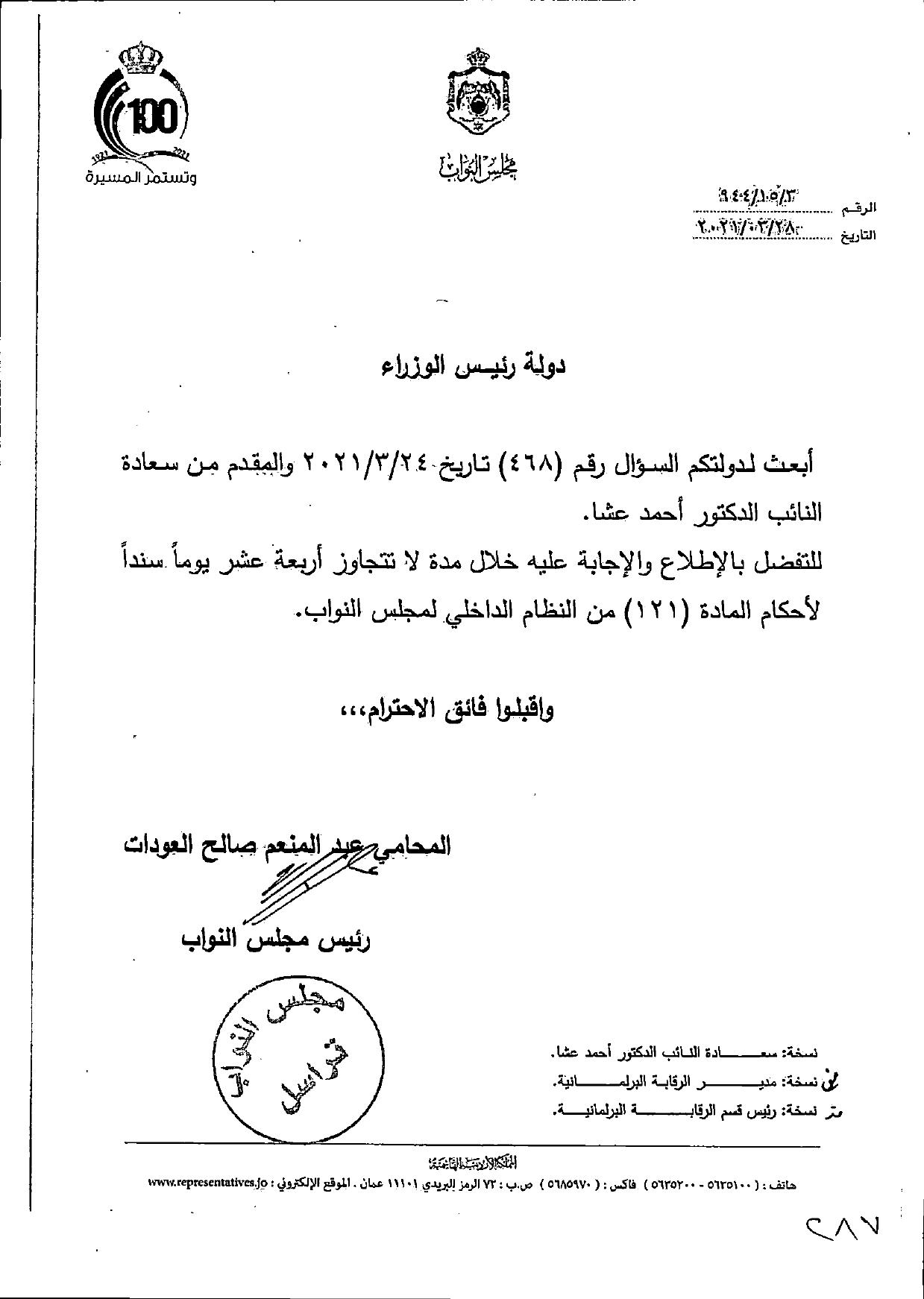 جاء رد الحكومة على سؤال نيابي من النائب الدكتور أحمد جميل عشا، تضمن استفسارات عن بيع أراض من مدينة البترا الأثرية ومطار العقبة وأراض في العقبة ومعان، إضافة إلى حق تشغيل قلعة الكرك وجبل نيبو، وامتياز التعدين في الطفيلة.