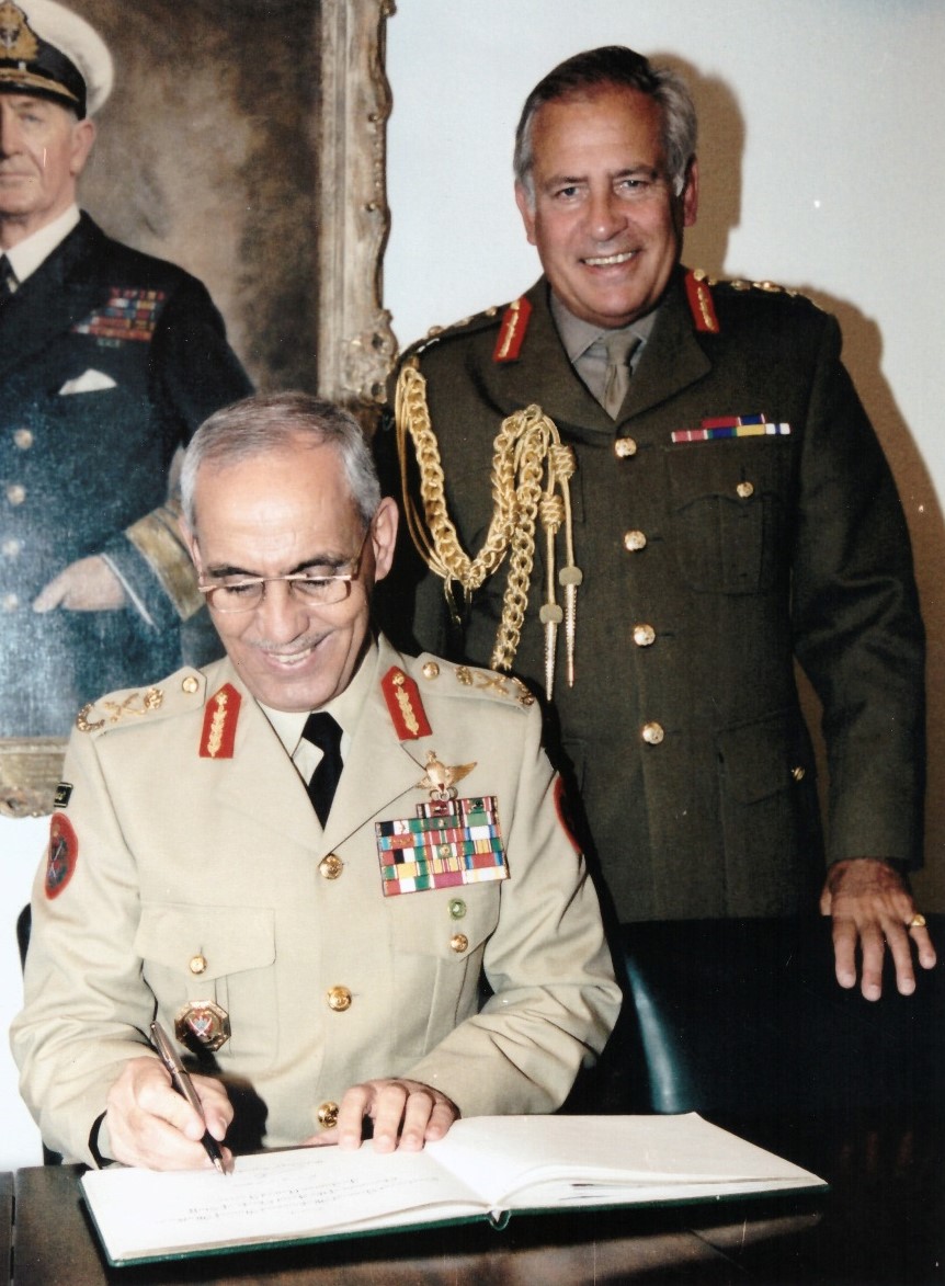 وفي عام 1975 كان هذا الجنرال الأردني الذي يحمل معه أينما حلّ وارتحل رائحة عِطر قمح بلدة (ملكا)، وامتداد سهول إربد، وقِمم جِبال البلقاء والكرك والشراةِ ووادي رم، وصمود وصلابة مدينة البتراء الحضارية والتاريخية، وهواء بلدة (أم قيس) العليل جارة الأفق لبحيرة طبريا وفلسطين، وشموخ لواء بني كنانة الأشم، كان هو أحد الضباط الأردنيين الأشاوس الذين دافعوا عن سلطنة عُمان الشقيقة، ليؤكد هذا الضابط الملكاوي الشاب من (صلالة ومن ظفار) على أرض عُمان أيضاً بأن الجيش الأردني الذي أطلق عليه المغفور له جلالة الملك المؤسس عبدالله الأول طيب الله ثراه (الجيش العربي)، هو جيش جاهز لنصرة الإخوة والأشقاء والأصدقاء والأحبة، وأن القوات المُسلّحة الأردنية حي رمز الحق والواجب والشرف والبطولة، وأنها ركيزة إحلال السلام العادل والمُشرّف في كلّ مهمّة توكل إليها.