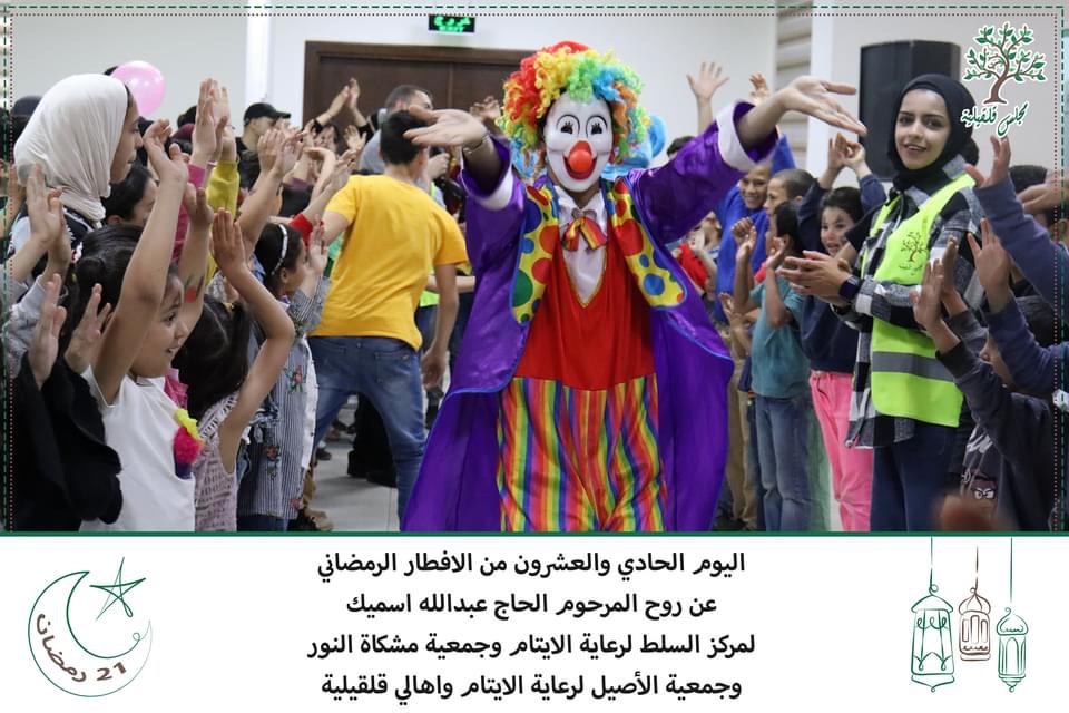 اقام مجلس قلقيلية افطاره الرمضاني الحادي والعشرون اليوم السبت الموافق 23/ ابريل عن روح المرحوم الحاج عبدالله اسميك والمقدم لمركز السلط لرعاية الايتام وجمعية مشكاة النور وجمعية الأصيل لرعاية الايتام واهالي قلقيلية