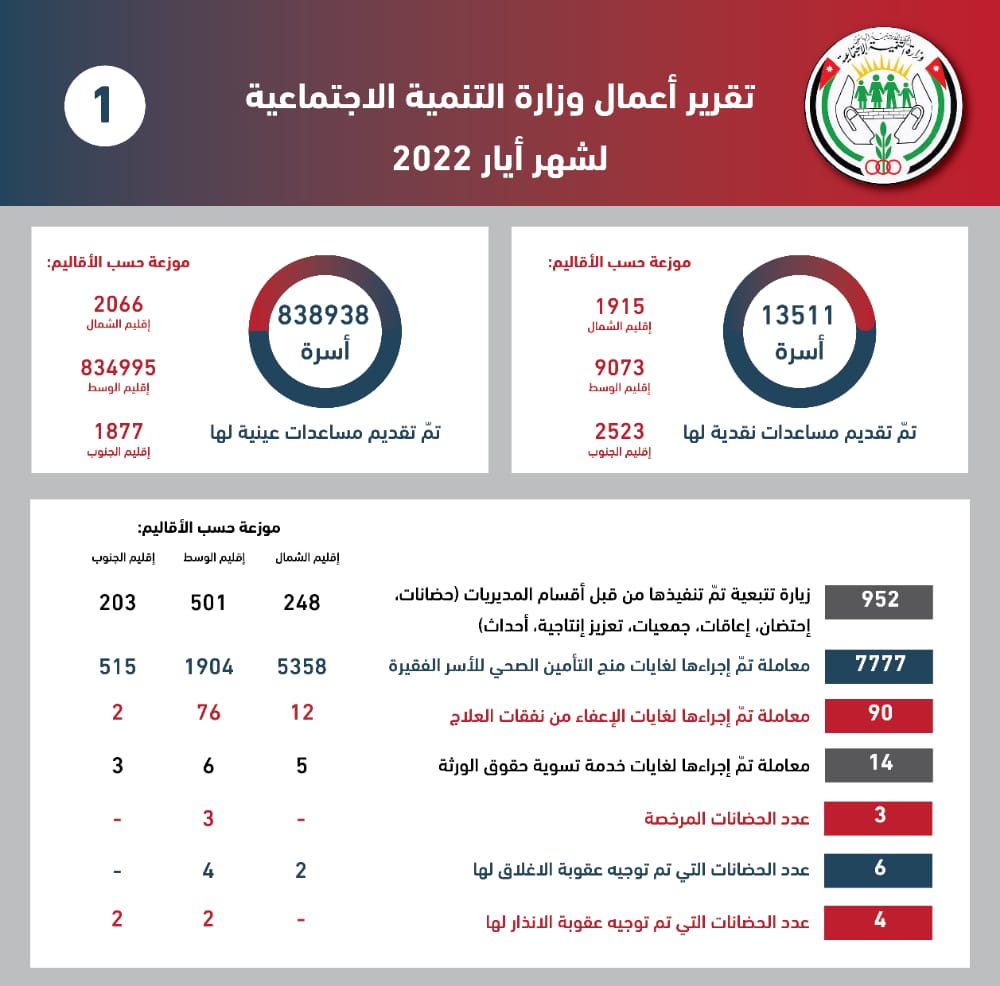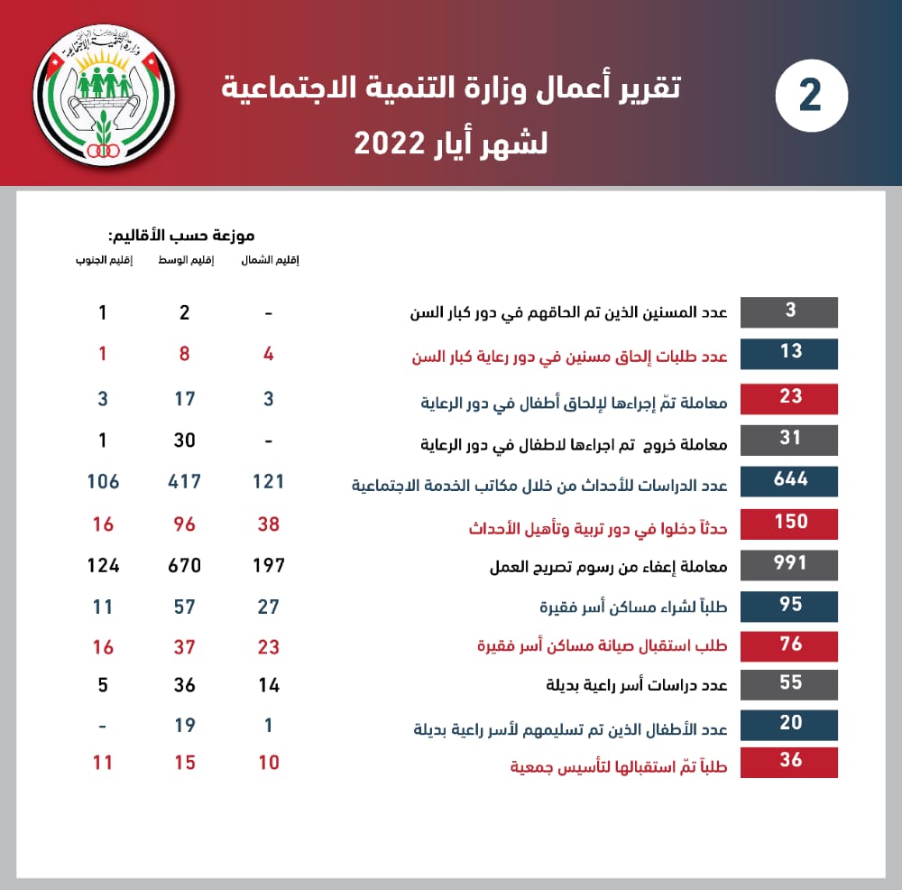 التنمية الاجتماعية تصدر تقريرها لشهر أيار الماضي