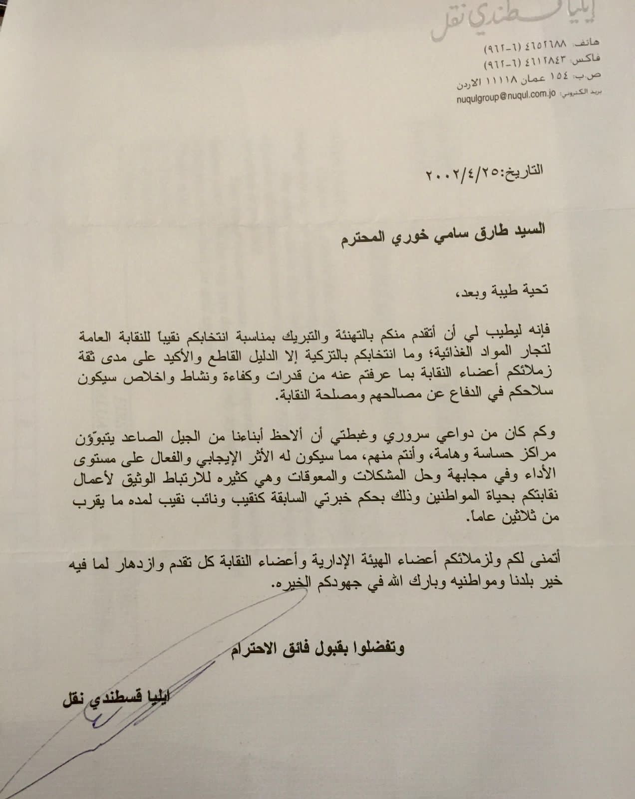 رحمة الله عليك العم الغالي القدوة إيليا نقل (أبو غسان).. أيها العصامي الجسور الذي أحب الأردن البلد الذي احتضنه وقدم له الكثير وشهد إنجازاته ونجاحاته التي لم تُنسِه يوماً عشقه لوطنه فلسطين التي لم تجد لها في قلبه ولا في فكره منازعاً طوال حياته..