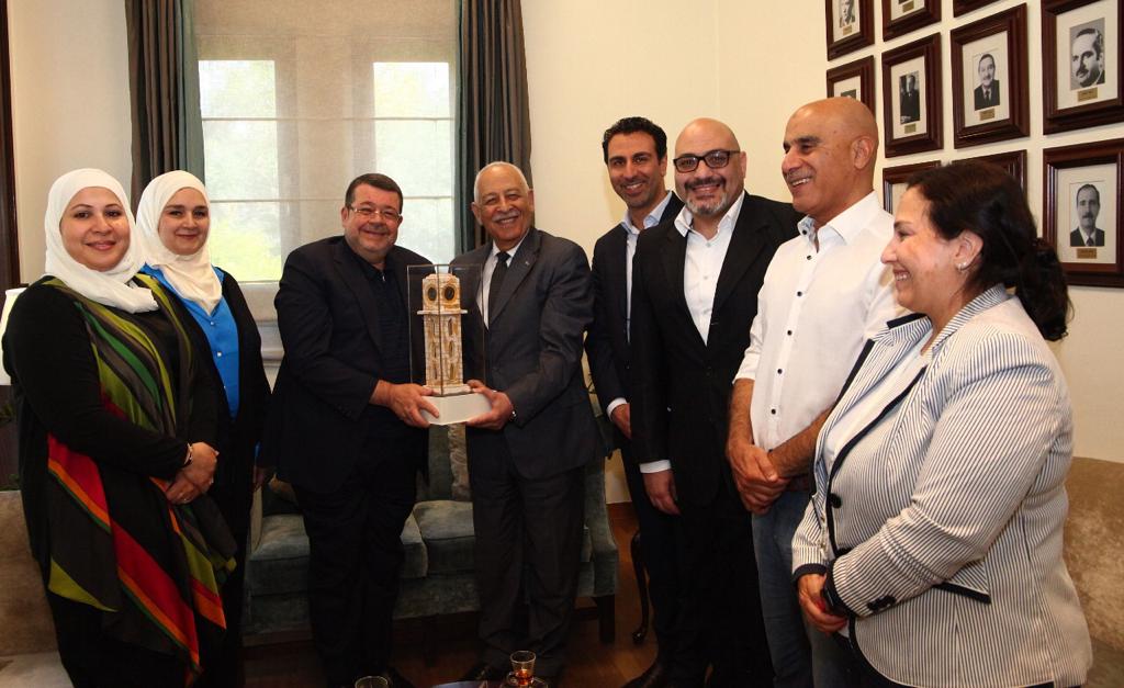 التقى رئيس الديوان الملكي العامر معالي يوسف العيسوي الخميس الموافق 16/6/2022 معالي السيد أيمن حتاحت / رئيس نادي خريجي الكلية العلمي الإسلامية وأعضاء الهيئة الإدارية