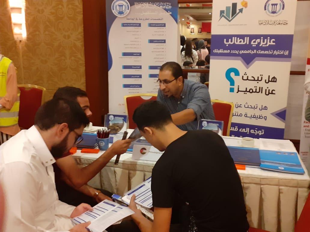 حيث تم استقبال طلبة الثانوية العامة وذويهم وكل المهتمين في قاعة المعرض في ظل تواجد عدد كبير من الجامعات الأردنية وغير الأردنية وتواصل ممثلو الجامعة مع طلبة الثانوية العامة وأولياء أمورهم الذين زاروا جناح الجامعة بهدف التعرف الى ما تطرحه الجامعة من برامج وتخصصات .