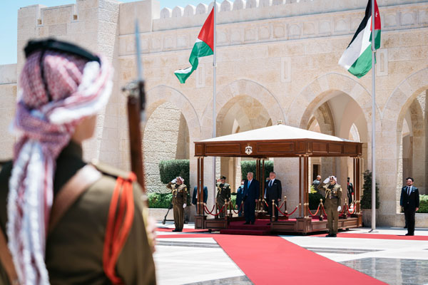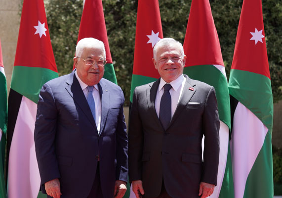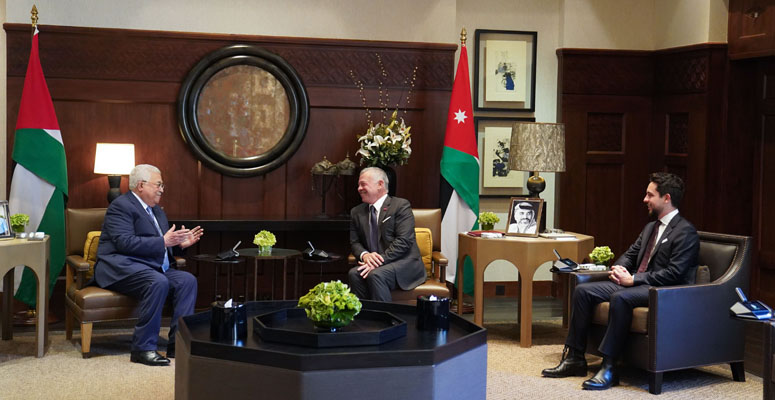 استقبل الملك عبدالله الثاني والأمير الحسين بن عبدالله الثاني، ولي العهد، الاحد، الرئيس الفلسطيني محمود عباس لدى وصوله قصر الحسينية