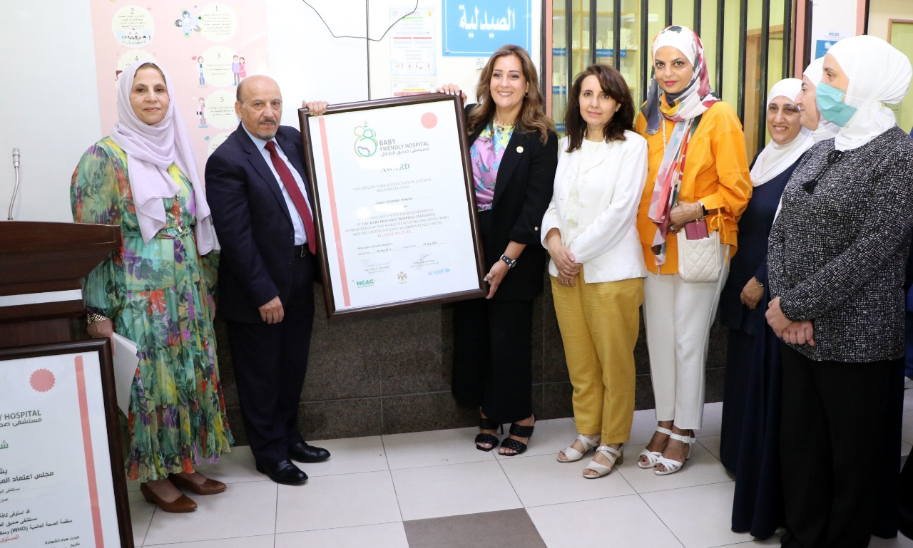 رعى مدير عام مستشفى الجامعة الأردنية الأستاذ الدكتور جمال ملحم، اليوم الخميس، احتفالاً نظمته لجنة مستشفى صديق للطفل في المستشفى احتفالاً بالأسبوع العالمي للرضاعة الطبيعية لدعم الأمهات الحوامل والمرضعات العاملات في المستشفى وتثقيفهن حول أهمية وفوائد الرضاعة الطبيعية، تزامناً مع حصول المستشفى على شهادة اعتماده كمستشفى صديق للطفل للمرة الثانية على التوالي.