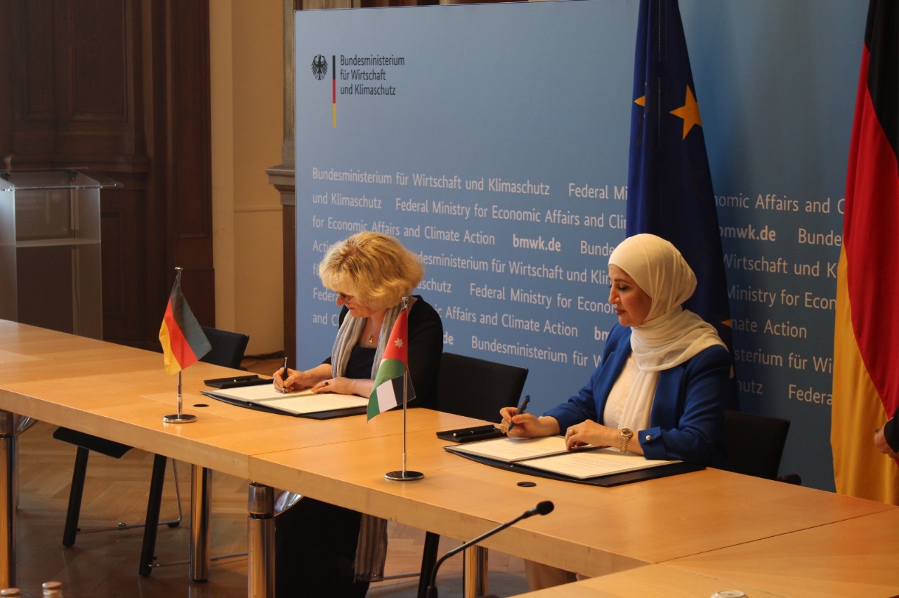 وتم خلال الاجتماعات التوقيع على إعلان النوايا حول إقامة شراكة مؤسسية لتشجيع الصادرات للمؤسسات الصغيرة والمتوسطة بين وزارة الصناعة والتجارة والتموين الأردنية والوزارة الاتحادية للاقتصاد وحماية المناخ الألمانية، بحضور السفير الأردني في برلين يوسف البطاينة ومدير غرفة صناعة عمان نائل الحسامي والأمين العام لغرفة التجارة العربية الالمانية وعدد من المسؤولين من كلا الجانبين.