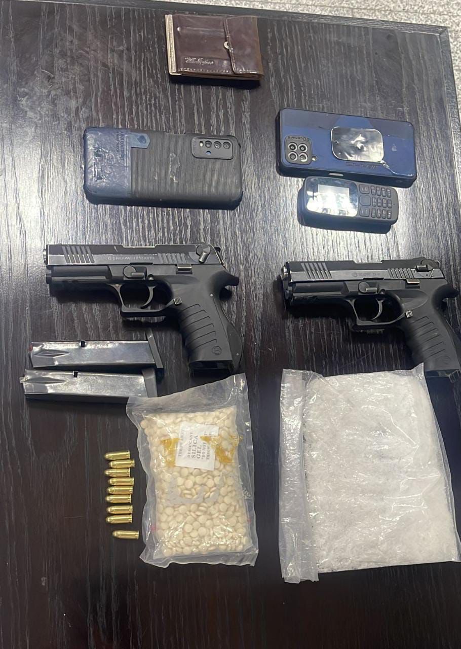 وفي القضية النوعية الرابعة فقد تمت مداهمة شخصين من مروجي المواد المخدرة على الطريق الواصل بين محافظتي المفرق والزرقاء بعد التأكد استخباريا من قيامهما بنقل كميات من المواد المخدرة وجرى القاء القبض عليهما وضبط بحوزتهما مسدس عدد 2 و 1000 حبة من حبوب الكبتاجون المخدر وكمية من مادة الكريستال المخدرة.