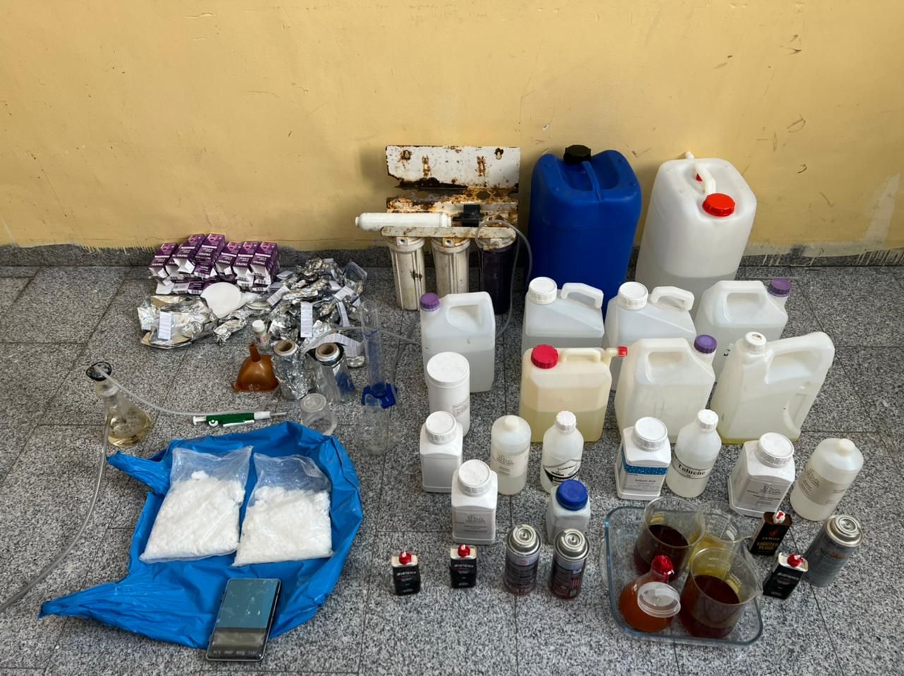 ** ضبط المتورطين في القضية وكميات كبيرة من المواد الكيميائية قبل اتمام عملية التصنيع