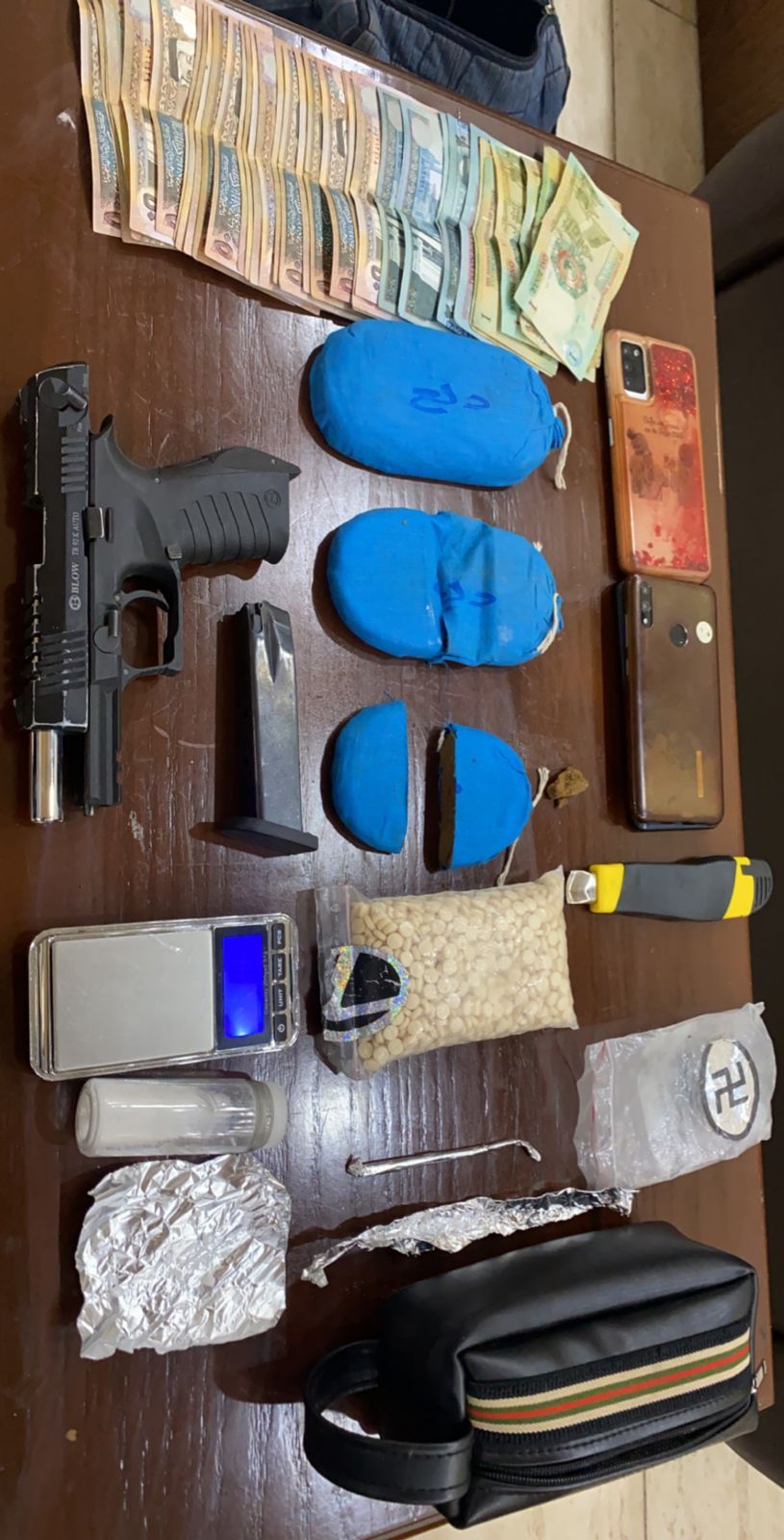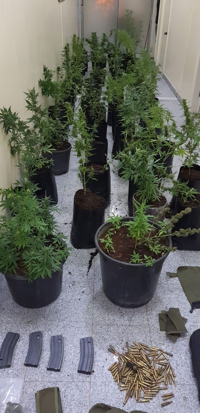 وجرى بعد التأكد من المعلومات مداهمة المزرعة والقاء القبض على الاب وأبنائه الثلاثة وضُبط داخل المزرعة 500 كيس بلاستيكي تحتوي على مادة الماريجوانا المخدرة اضافة إلى ضبط 300 شتلة من ذات النبتة وسلاح ناري .