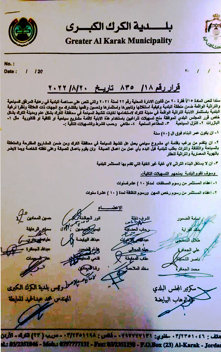 تسهيلات لإقامة مشاريع سياحية بالكرك "وثيقة"