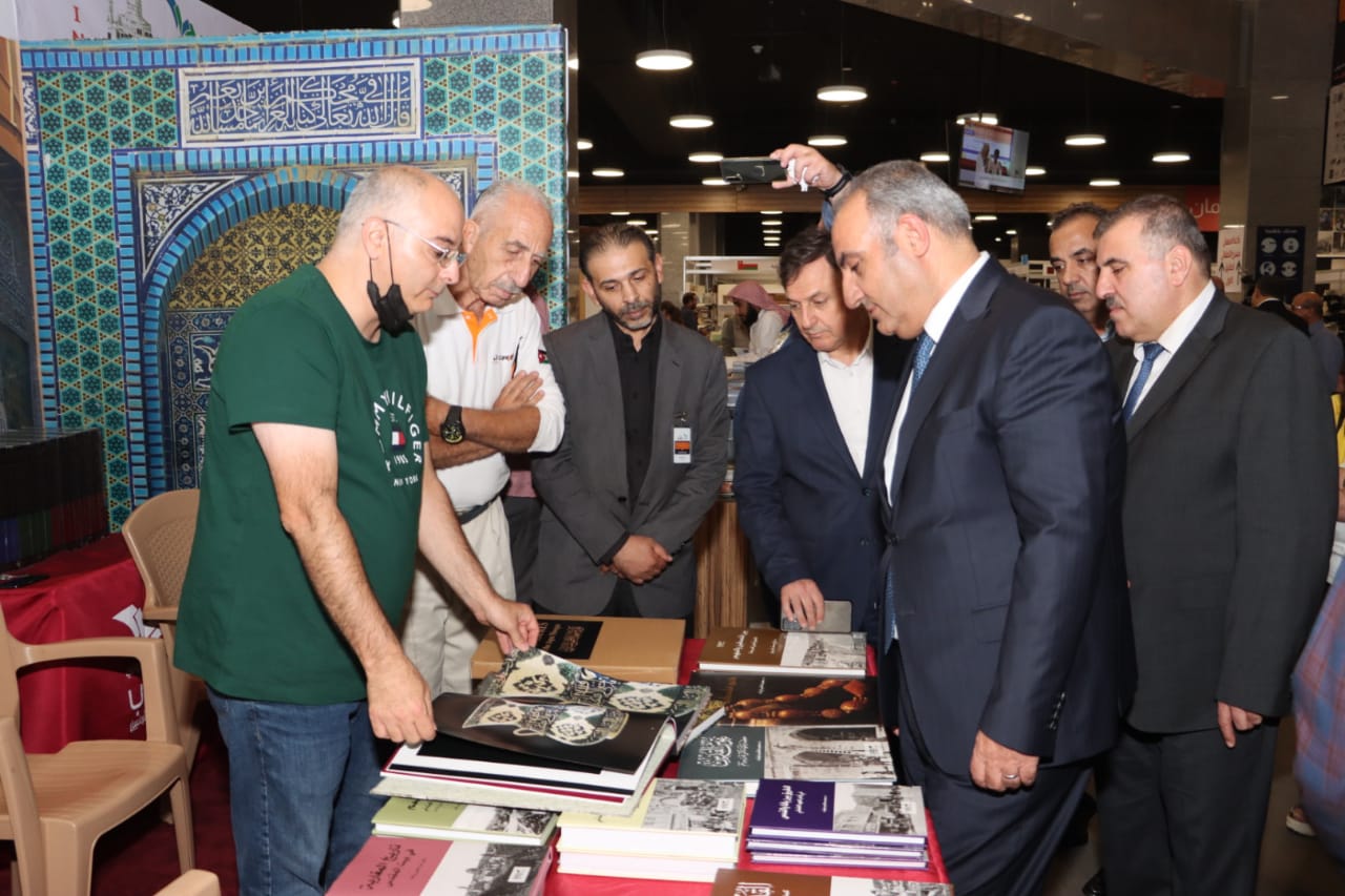 وفي جولة له في المعرض، زار أمين عمان الجناح المخصص لأمانة عمان الكبرى الذي يحتوي على عدد من الكتب والاصدارات التي تعود للأمانة.
