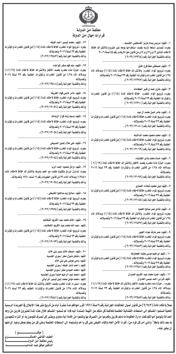 وطلبت المحكمة من أفراد الأمن العام إلقاء القبض على كل واحد منهم وتسليمه إلى السلطات المختصة، كما دعت كل من يعلم بمحل وجودهم التبليغ عنهم.