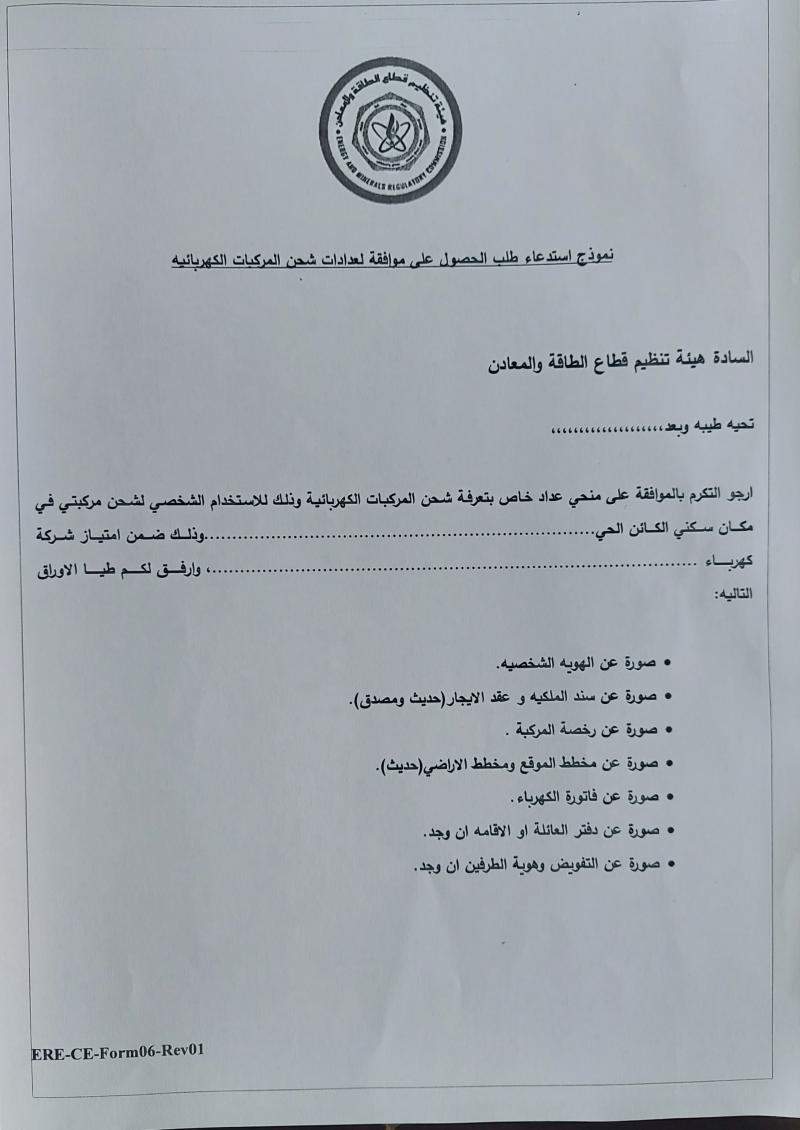 وبحسب تصريحات إذاعية للقاق، اليوم الأربعاء، فإن على مقدم الطلب للحصول على موافقة عداد شحن لمركبة كهربائية أن يكون مالكا لسيارة كهربائية أو أحد أفراد عائلته، ويملك سند تسجيل بالمنزل الذي يسكنه.
