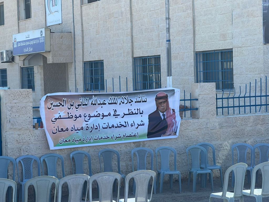 نحن موظفي شراء الخدمات التابعين لعقد ادارة وتشغيل مياه معان / محافظة معان نعلن عن اعتصامنا واضرابنا المفتوح عن العمل لحين تحقيق مطالبنا الذي يتم تجاهله منذ سنوات ورفع الظلم الواقع علينا حيث اننا نقوم بجميع الاعمال والمهام الموكله ألينا كباقي زملائنا المثبتين وتتلخص مطالبنا بما يلي.