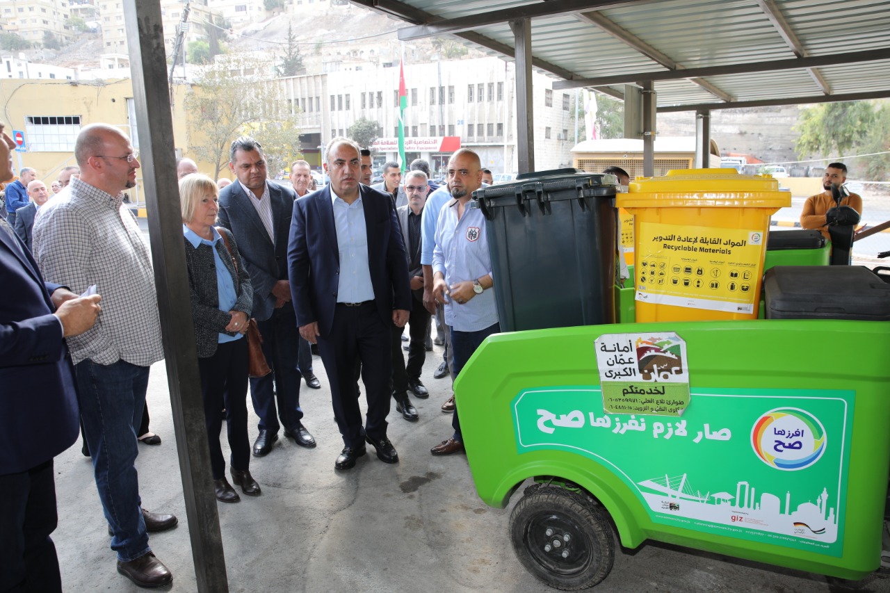 واستمع الشواربة من مديرة مشروع إدارة النفايات الصلبة في الأردن ومشروع مسؤولية المنتج الممتدة لمواد التعبئة والتغليف غابريالا يانيكوفسكي عن التعاون القائم مع الأمانة في مشروع فرز النفايات من المصدر وعن إيجابيات استخدام الآليات الكهربائية بالكامل لجمع النفايات والتي ستستخدم في منطقة المدينة ومساهمتها في تخفيف الأزمات المرورية وتقليل كلف استهلاك الوقود بالإضافة إلى التقليل من الانبعاثات التي تساهم في التغير المناخي.