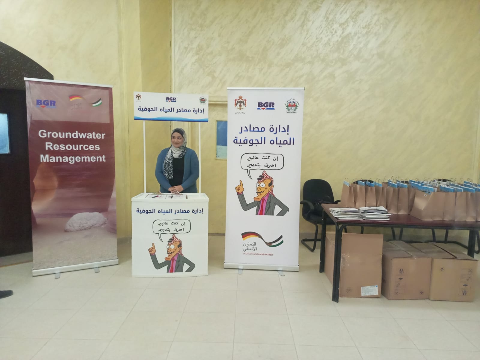 نظمت وزارة المياه والري-سلطة المياه شؤون الاعلام والاتصال بحضور نائب محافظ معان رائد الجعافرة ورئيس مجلس اللامركزية محمود النعيمات ومساعد امين عام وزارة المياه م. عادل عبيات ومدير مياه محافظة معان م. محمد العسوفي ومساعد الامين العام لشوون الاعلام الناطق الرسمي باسم الوزارة عمر سلامة ومديرة مشروع (BGR) المعهد الفيدرالي الالماني لعلوم الارض ربيكا بهلز وأعضاء اللامركزية وعدد من المعنيين بقطاع المياه من القطاعين العام والخاص وسيدات المجتمع المحلي ضمن الحملة التوعوية لحماية مصادر المياه الجوفية ( إن كنت عالبير، اصرف بتدبير) في دار محافظة معان اليوم الخميس ضمن برنامج التعاون الفني لمشروع ادارة مصادر المياه الجوفية في الاردن بين وزارة المياه والري والمعهد الفيدرالي الالماني لعلوم الارض BGR والممول من قبل الوزارة الألمانية للتعاون الاقتصادي والتنميةBMZ ، لتعزيز ثقافة الحصاد المائي والمحافظة على المياه ورفع الوعي بواقع المياه الجوفية وحمايتها من التلوث والاعتداءات .