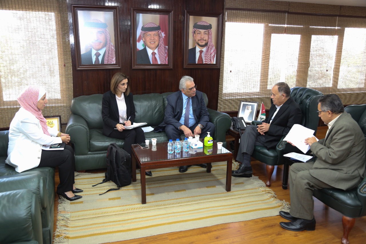 اجتمع المهندس محمد النجار وزير المياه والري في مكتبه مع رئيس سلطة المياه الفلسطينية المهندس مازن غنيم بحضور المهندسة روان السعيد من سلطة المياه الفلسطينية و أمين عام وزارة المياه والري د. جهاد المحاميد وأمين عام سلطة وادي الأردن م. منار محاسنة وبحث معهم أوجه التعاون المشترك في مجالات المياه والصرف الصحي.