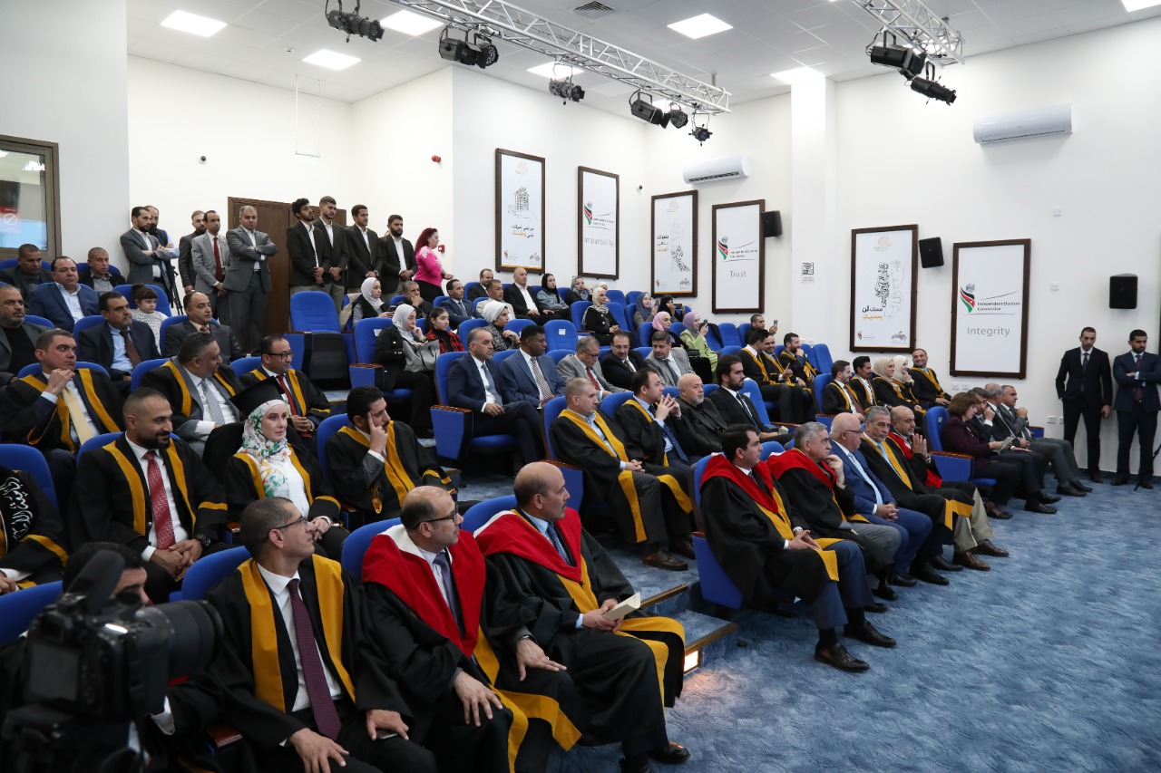 وألقى كلمة الخريجين الطالب عيسى ملو العين حيث قال فيها: حُق لنا أن نفخر في هذا اليوم بكوننا الفوج الأول من خريجي برنامج الدبلوم العالي في السياسات الانتخابية وإدارتها حيث شكل هذا البرنامج محطة تعليمية مهمة ليس لأنه علم تطبيقي وحسب، بل لأنه قد رفد وعينا بقيم أثرت بنا كطلبة، من أهمها رحابة الصدر وتقبل الآخر والحوار الإيجابي، حيث حظيت هذه الدفعة بعلم أساتذة أجلاء ساهموا في تهذيب نقاشاتنا.
