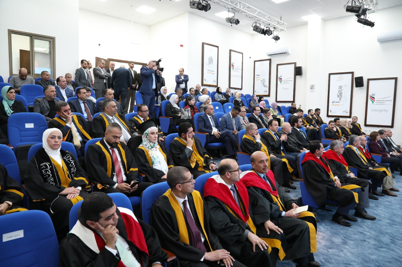 وفي كلمته التي ألقاها في حفل التخريج قال المعايطة: بفخر نحتفل بالدفعة الأولى من الخريجين في تخصص السياسات الانتخابية وادارتها، وهو الفوج الذي ترك بصمة واضحة منذ بداية هذا البرنامج الأكاديمي، فكان لتنوع طلابه سياسيا ومهنيا، الأثر في الدمج بين ما هو نظري وتطبيقي في علم لم تؤطر مفاهيمه ولم تجمع مستوياته في صفحات الكتب.