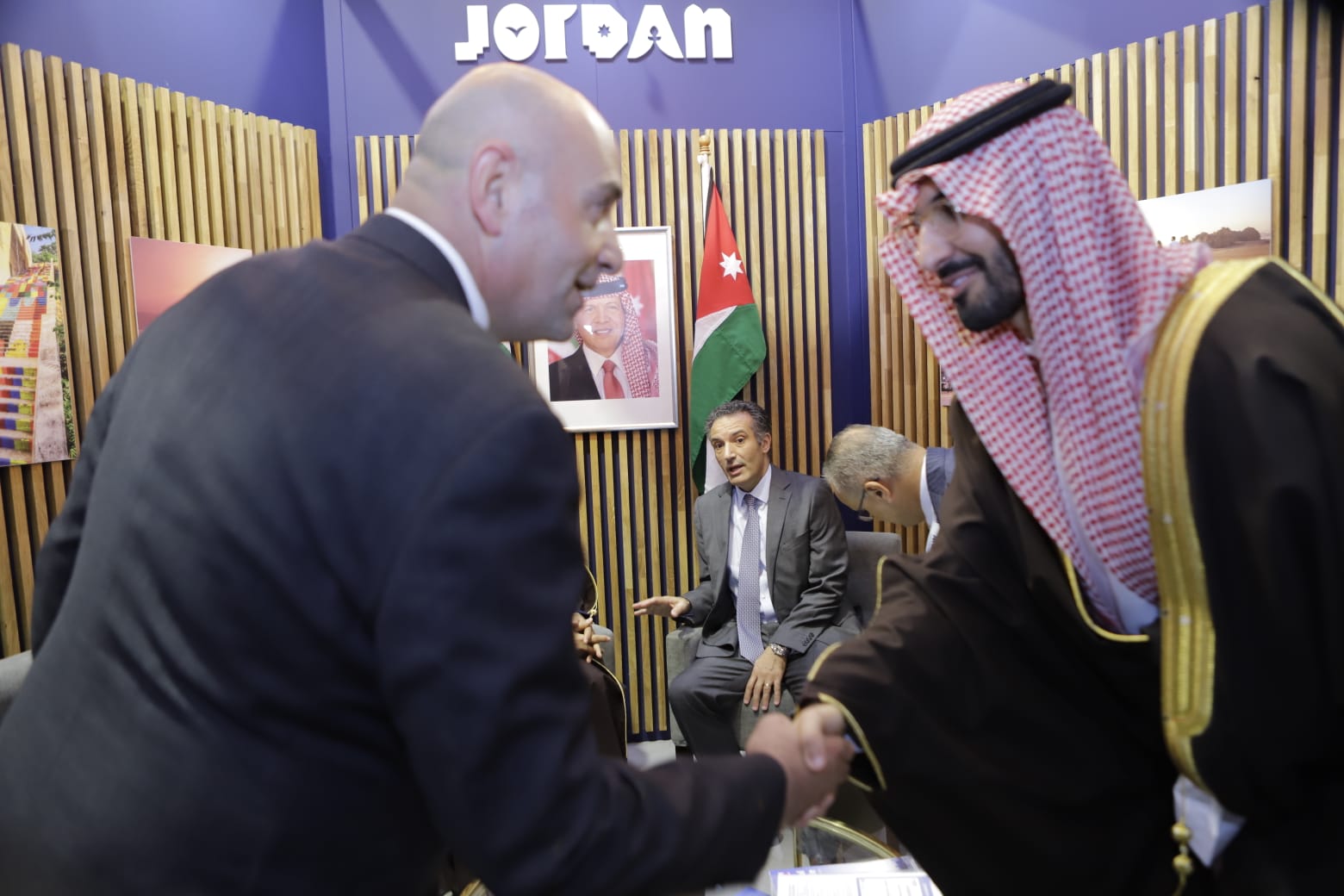 كما التقى وزير السياحة والآثار نايف الفايز، في الجناح الأردني وزير السياحة في المملكة العربية السعودية أحمد الخطيب.