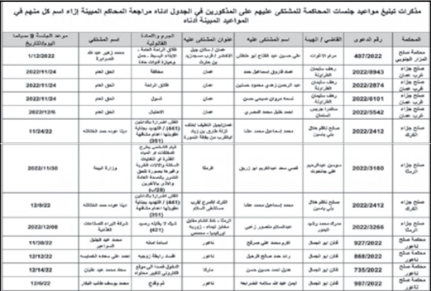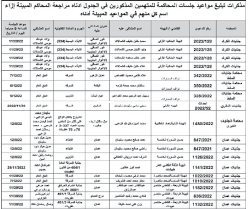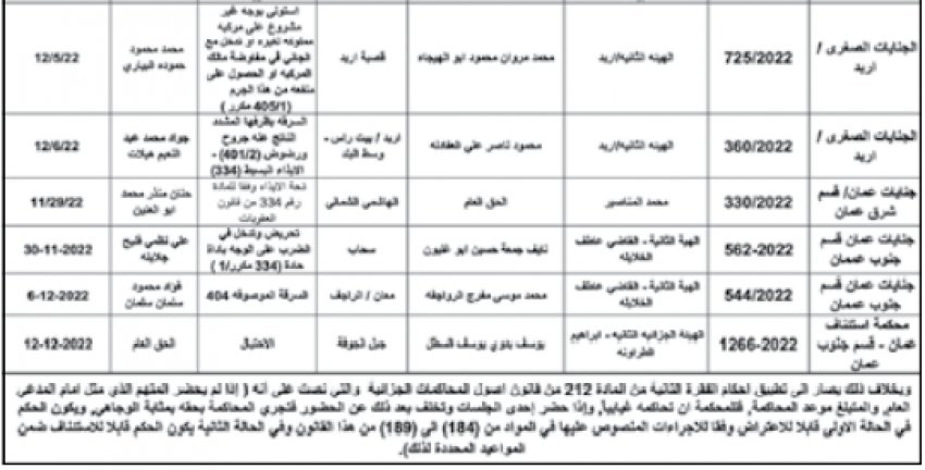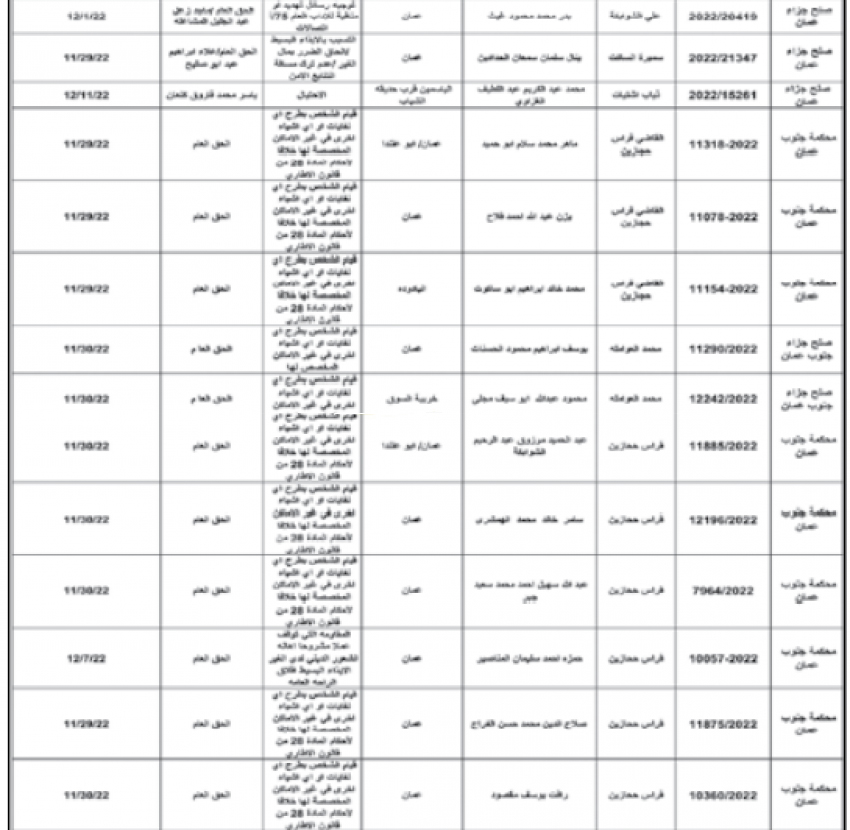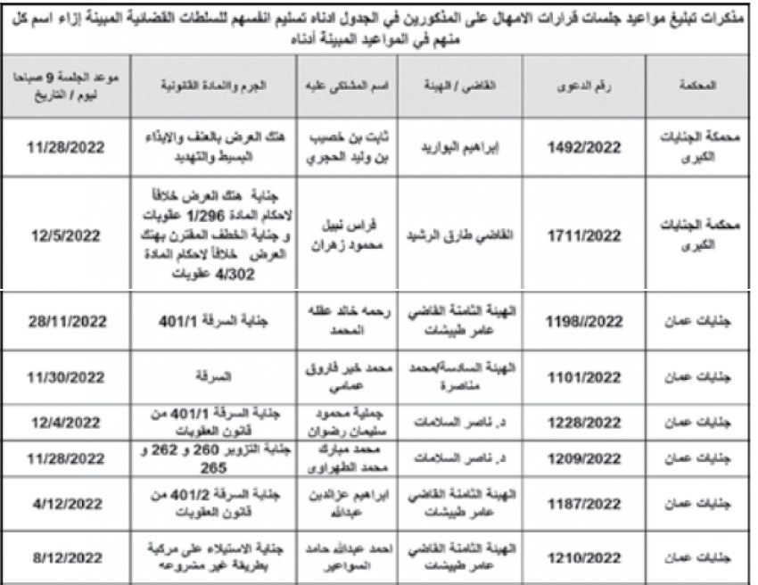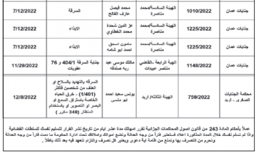 أمهلت محاكم متهمين، 10 أيام من تاريخه، لتسليم أنفسهم للسلطات القضائية المختصة لمحاكمتهم على التهم المسندة إليهم، وإلا سيتم اعتبارهم فارين من وجه العدالة، وتوضع أموالهم تحت إدارة الحكومة ويحرمون من التصرف بها ويمنعون من إقامة أية دعاوى ويعتبر كل تصرف يقومون به أو التزام يتعهدون به بعد ذلك باطلا.