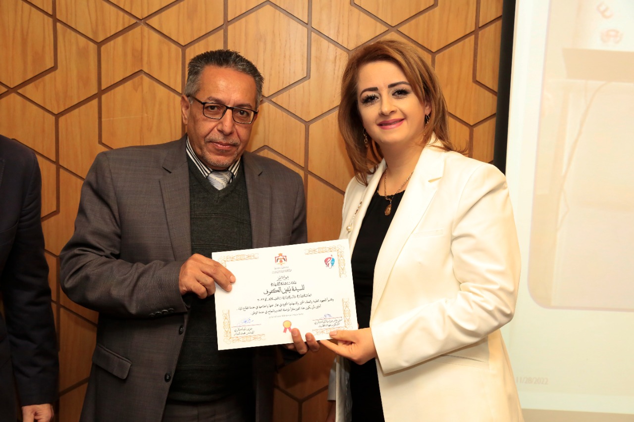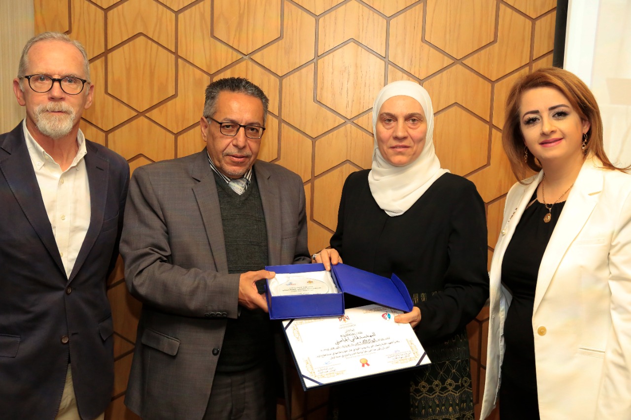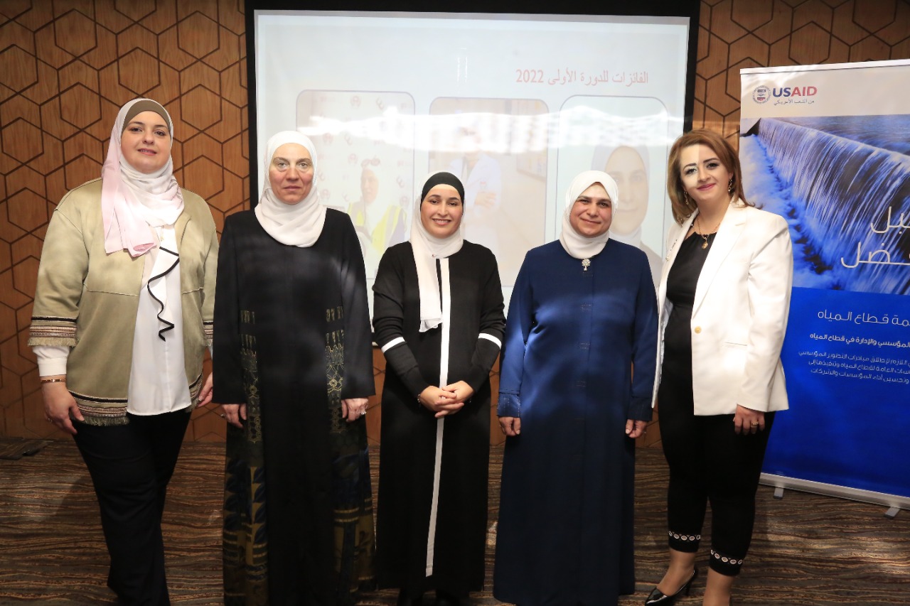 كرم امين عام وزارة المياه والري الدكتور جهاد المحاميد ومدير مشروع حوكمة قطاع المياه USAUD السيد شون مكنالي الفائزات بمبادرة رياديات قطاع المياه بالتعاون مع مشروع حوكمة قطاع المياه، الممول من الوكالة الأميركية للتنمية الدولية بحضور مساعد امين عام الشؤون الادارية والمالية/ الوزارة محمد عفيشات ومساعد امين عام الشؤون الادارية /سلطة المياه عماد القطاونه ومساعد الامين العام لشؤون الاعلام عمر سلامة ومديرة وحدة دراسات المراة نيفين الكفوف وعدد من موظفي وموظفات قطاع المياه .