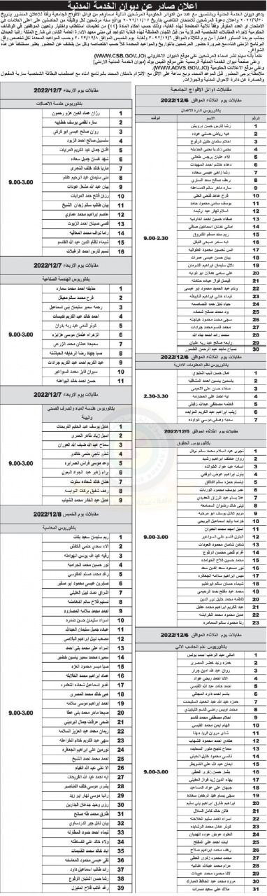 دعا ديوان الخدمة المدنية، مرشحين من أوائل الأفواج الجامعية، لإجراء المقابلات الشخصية المركزية.