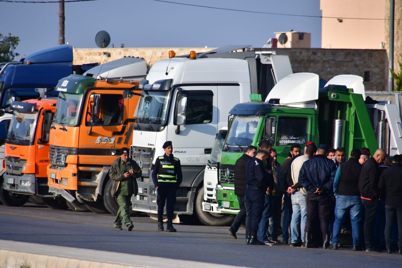 إضراب سائقي وأصحاب الشاحنات يمتد إلى السلط - صور